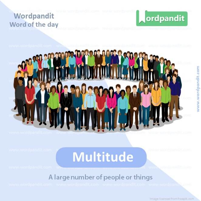 EXPLANATORY PARAGRAPH: Imagine going to a big party with lots and lots of people. There are so many people that you can’t even count them all. “Multitude” means a very big number of something, like people or things.