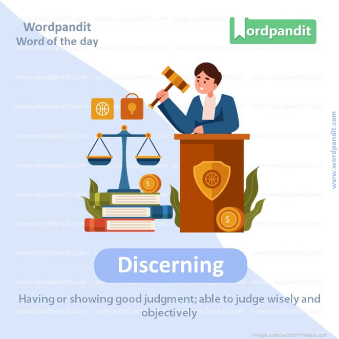 EXPLANATORY PARAGRAPH: Discerning is a word used to describe someone who can tell the difference between good and bad stuff. Like if your friend can always tell which apples are the sweetest at the market, we could say your friend is very discerning.