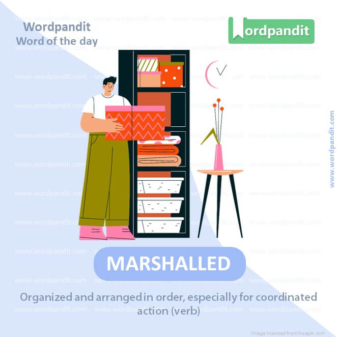 EXPLANATORY PARAGRAPH: Marshalled means getting things or people all ready and in the right order. It’s like being the leader in a game, making sure everyone knows what to do.