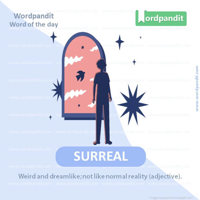 MEANING: Weird and dreamlike; not like normal reality (Adjective).