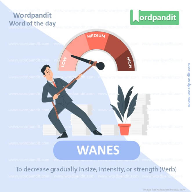 EXPLANATORY PARAGRAPH: Imagine you have a bright, glowing lantern, but over time it starts to shine less brightly. We say the light “Wanes” when it gets dimmer or weaker. It’s like when you get tired, and your energy goes down.