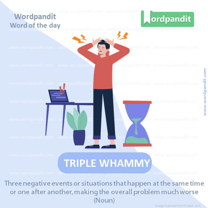 EXPLANATORY PARAGRAPH: Imagine you are playing a video game and you get hit by one monster, then another one, and then another one, all very quickly. Ouch! That’s like getting a “Triple Whammy.” It means three bad things happening very close together, making things really difficult for you.