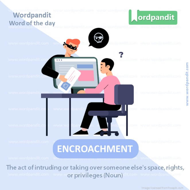MEANING: The act of intruding or taking over someone else’s space, rights, or privileges (Noun).