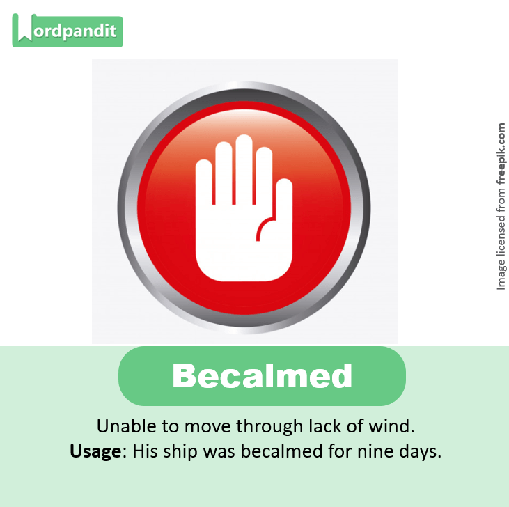 Usage: His ship was becalmed for nine days.