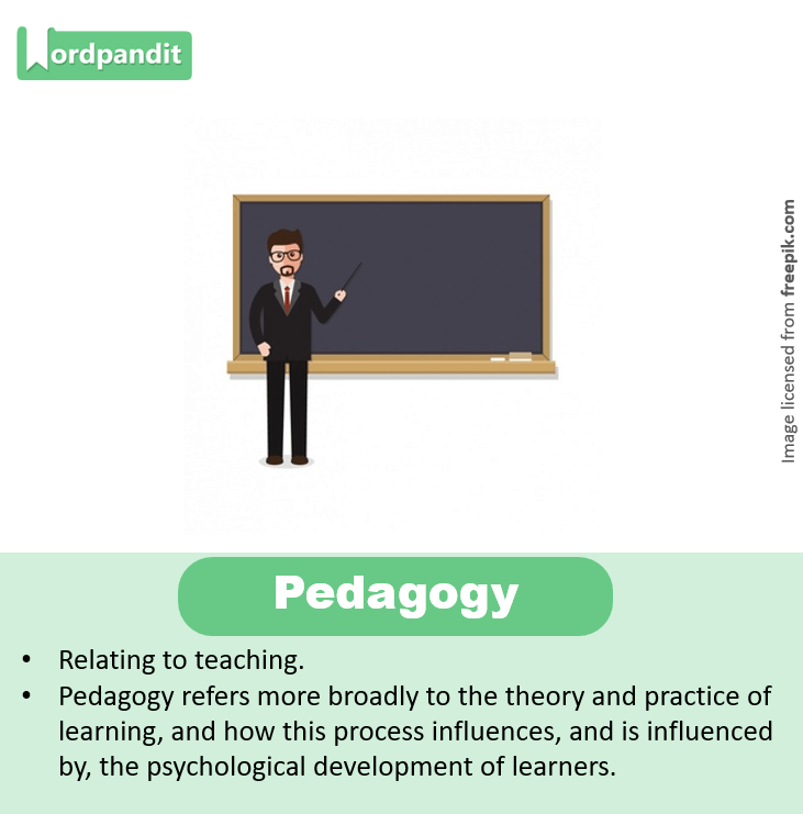 • Pedagogy refers more broadly to the theory and practice of learning, and how this process influences, and is influenced by, the psychological development of learners.