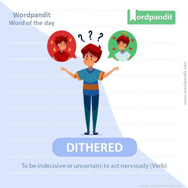 EXPLANATORY PARAGRAPH: “Dithered” means when you can’t make up your mind about something. Imagine you’re trying to choose between two candies, and you keep going back and forth because you can’t decide. That’s dithering!