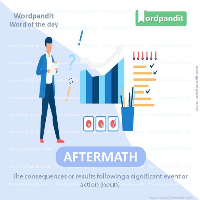 MEANING: The consequences or results following a significant event or action (noun).