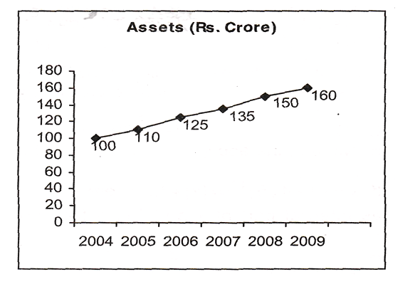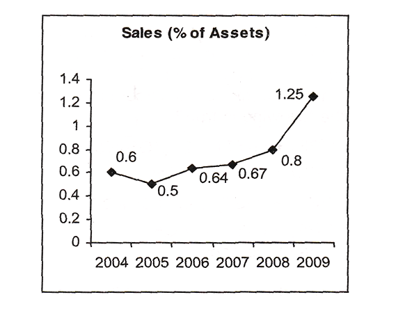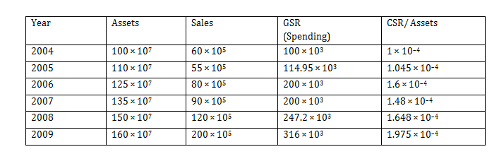 The following graphs give annual data of Assets, Sales (as percentage of Assets) and Spending on Corporate Social Responsibility (CSR) (as percentage of Sales), of a company for the period 2004-2009.