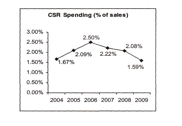Question 3. What was the maximum value of spending on CSR activities in the period 2004 – 2009?