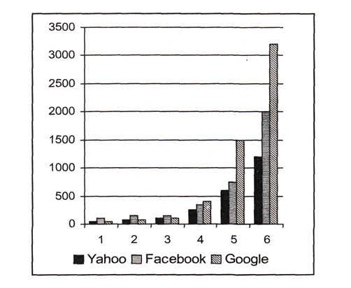 Question 3. What would have been Facebook’s revenue (in $ million) in its sixth year of operation if the company had matched Google’s percentage growth in revenues from the fifth to the sixth year? Choose the option that is nearest to the answer.