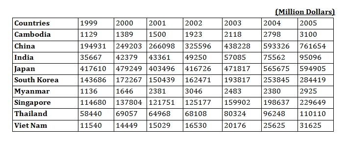 Option D: During 2004 – 2005, difference between the growth rates of China and Japan = 28.37 – 5.17 = 23.2%, which is lower than the export growth rate of Vietnam (23.41%) in the same period. Hence, (D) is not false.