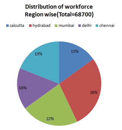 Question 4: If under expansion programme, the company recruits 12% of workforce of Hyderabad and Mumbai regions, but 6% of workforce of Calcutta region retires, and workforce at other regions remains the same, then what will be the total workforce of the company?