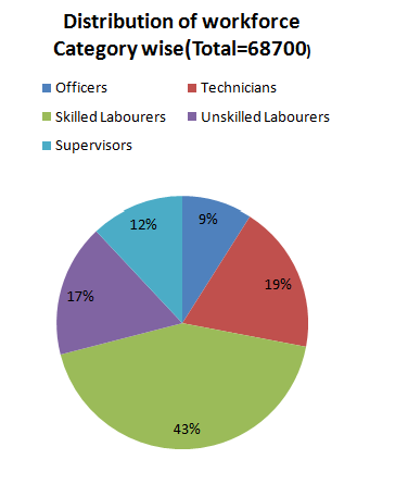 The total workforce at Calcutta = 15% of 68700 = 10305