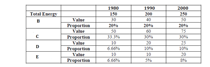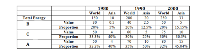 As seen from the above table, A is the fuel whose proportion in the total energy demand increases during 1980-1990 and decreases during 1990-2000 for both world & SA.