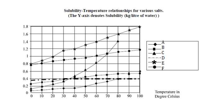 The solubility of F, B, Dis almost constant as we see the graph between 15oC &25oC. Also, it can also be seen from graph that solubility of E is maximum.