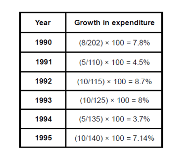 Growth in expenditure over the previous year = (previous expenditure – present expenditure) / previous expenditure × 100