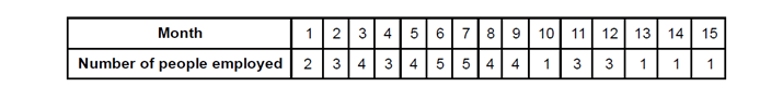 In the 6th month, 4 people are employed and in the 8th month 5 people are employed.