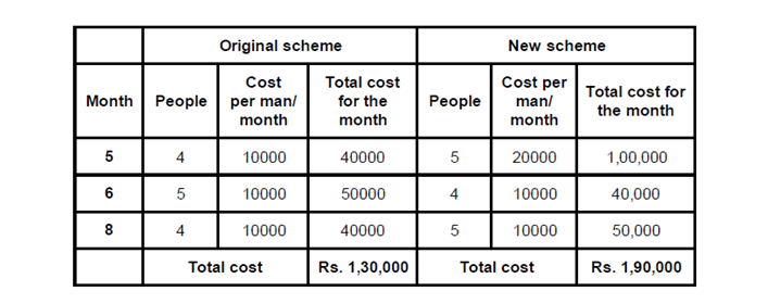 From the given data we know that originally for the 5th month, 4 people were scheduled to do coding. Total cost for 4 people = (10000 × 4) = Rs. 40,000.