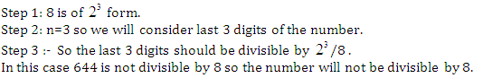 2. If the divisor is a composite number then do factorization of divisor into factors, which are co-prime and check the divisibility for each prime factor individually.