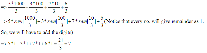 Divisibility check for 3: Number is divisible by 3 if the sum of all the digits of number is divisible by 3.