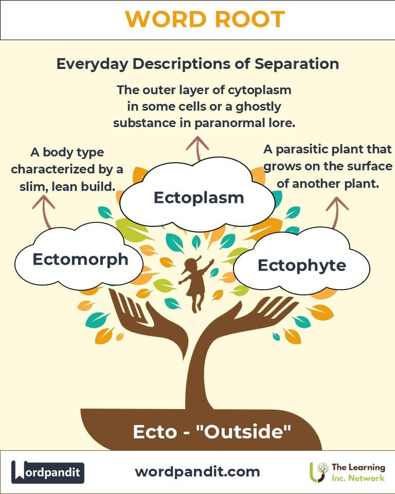 What lies on the surface, at the edge, or beyond the boundaries? The root "Ecto" (pronounced ek-toh), derived from Greek, means "outside" or "external." It vividly captures the idea of outer layers and placements, especially in biology, where it describes external structures like the ectoderm—the outermost layer of cells in an embryo. Ecto-related words connect science, culture, and language, emphasizing boundaries and the external world.