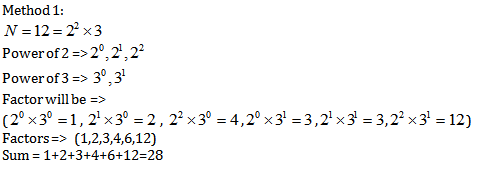 Step 2 : Sum of all the factors [(ap+1-1)/(a-1) x (bq+1-1)/(b-1) x (cr+1-1)/(c-1)………]