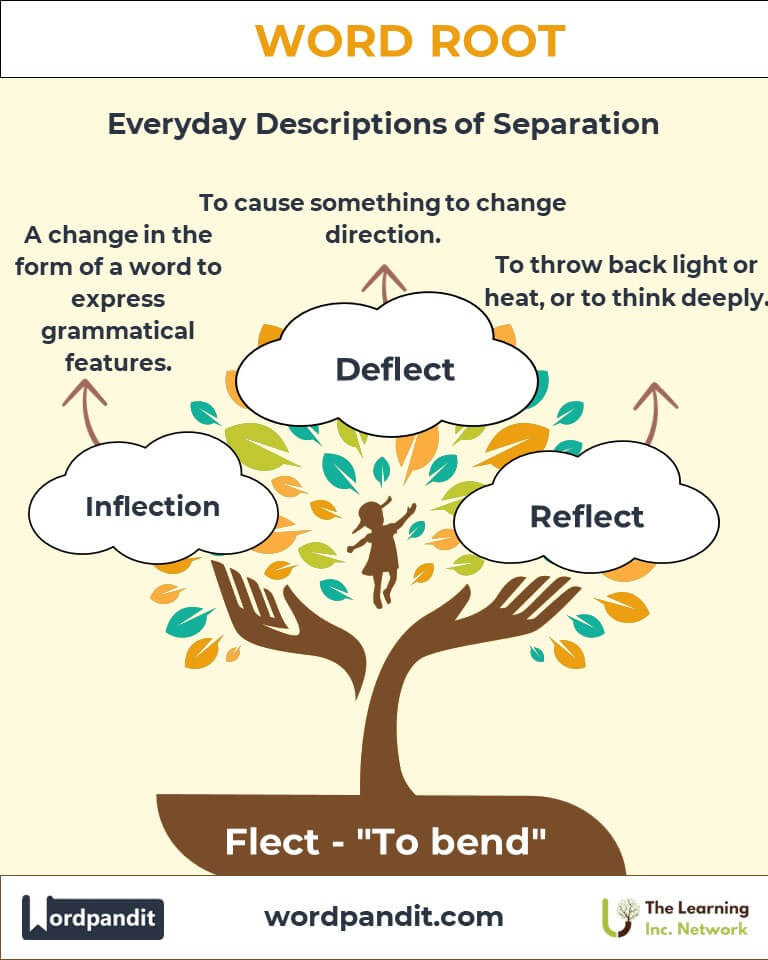 A: The root "Flect" comes from the Latin word flectere, which means "to bend." This bending can be physical (like bending metal), intellectual (like changing perspectives), or linguistic (such as the inflection of words to indicate tense or number).
