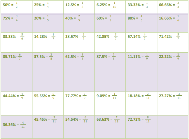 This percentage to fraction conversion and vice-versa has a huge application in DI sets. Therefore, make sure that you are thorough with this table.