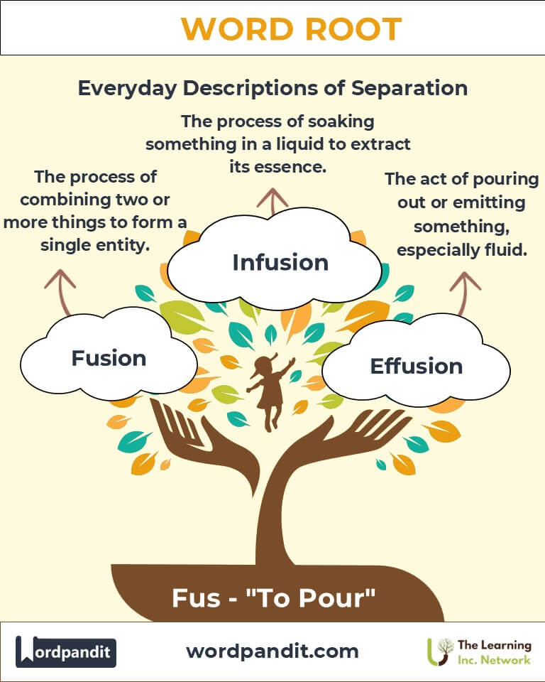 Picture molten metal being poured into a mold to create a sculpture—that’s the power of the root "Fus." Pronounced as "fyooz," it encapsulates the ideas of pouring, merging, and transforming. Derived from Latin, "Fus" manifests in words across science, art, and language, symbolizing the interconnectedness of elements.
