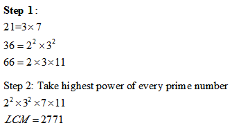 Example: Find the LCM of 21,36 and 66