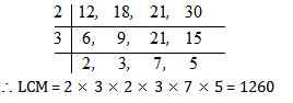 Question 1. Find LCM of 12, 18, 21, 30 by prime divisor method.