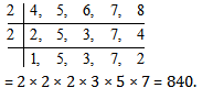 Q2. Find LCM of 4,5,6,7,8 by prime divisor method .