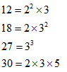 Question 3. Find LCM of 12, 18, 27, 30 by prime factorization method .
