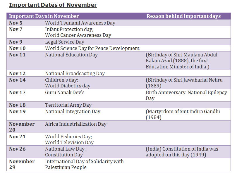 This list will help you learn about important days of both National and International i.e. India and World. In addition, the reason behind these days so this will help you in cross-questions also.