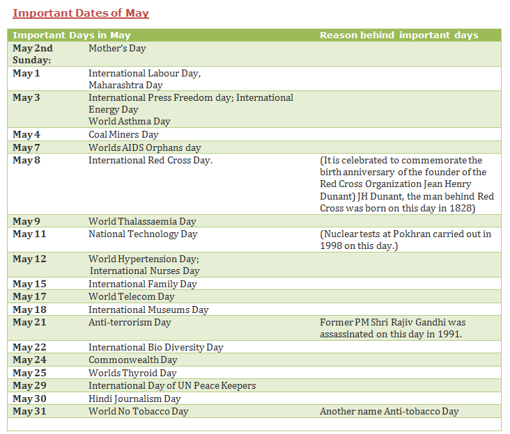 Days, Month wise, and provide you detail description of all description their reason behind the particular days Etc. So, it will be easy for the candidates to tackle any type of cross question in any competitive exam from this topic (Bank Exams like IBPS PO, IBPS Clerks, Specialist officer SBI PO, Clerks,) Not only in bank exam other competitive like SSC Multitasking, CGL, etc. and other recruitment examinations