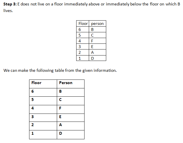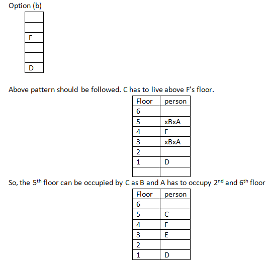 Thus, the correct option is (a).Answer 2: (a) B lives on 6th floor. Thus, the correct option is (a).