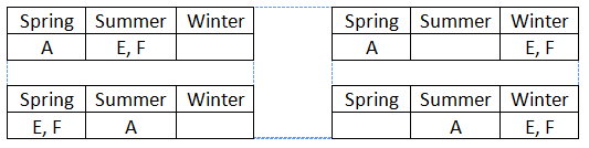 (iv) A can be grown neither in the winter season nor in the same growing season as E or F.