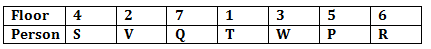 P, Q, R, S, T, V and W are sitting in a straight line facing north. Each one of them lives on a different floor in the same building which is numbered from one to seven.
