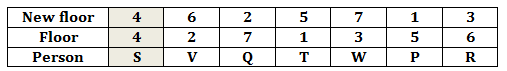 Question 7: If all the persons are made to live in alphabetical order from the bottom-most floor to the top-most floor (i .e. P lives on the 1st floor, Q lives on the 2nd floor and finally W lives on the 7th floor) who would still live on the same floor as the original arrangement?
