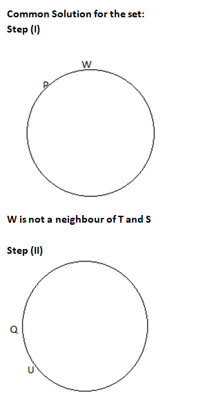 P, Q, R, S, T, U, V & W are eight friends sitting in a circle facing towards the centre.
