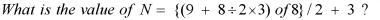 What is the value of N= {(4 +5) of4}/3 + 2?