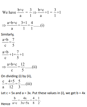Question 7: If a: (b + c) = 1: 3 and c: (a + b) = 5: 7, then b: (a + c) is equal to?