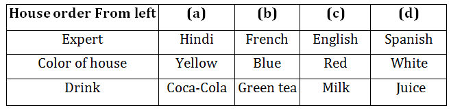 Answers 3: (a) The color of Hindi expert’s house is yellow. The correct choice is (a).
