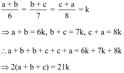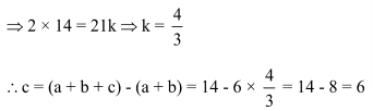 Question 7: If (a + b): (b + c): (c + a) = 6: 7: 8 and (a + b + c) = 14, then the value of c is