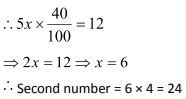 Question 9: There is a ratio of 5: 4 between two numbers. If 40 per cent of the first is 12, then 50% of the second number is: