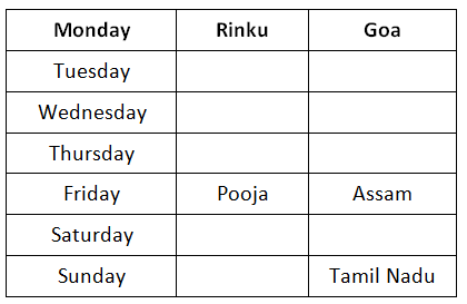 Common solution for the set: From the given information (statements 1,2 and 4), we can first draw this table directly: