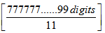 Now, in the given question, digit 7 is repeated 99 times hence it must be divisible by 11 .so remainder = 0