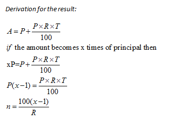 If a sum of money becomes x times in n years at simple rate of interest, then the time is calculated as