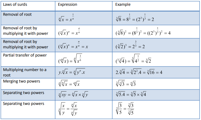 It can be noted that the operations applied in surds are basically opposite of that applied in exponents.