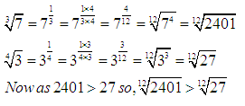 LCM of denominators of powers is = LCM (3, 4) = 12. Now, we will make the denominators of powers equal to 12.
